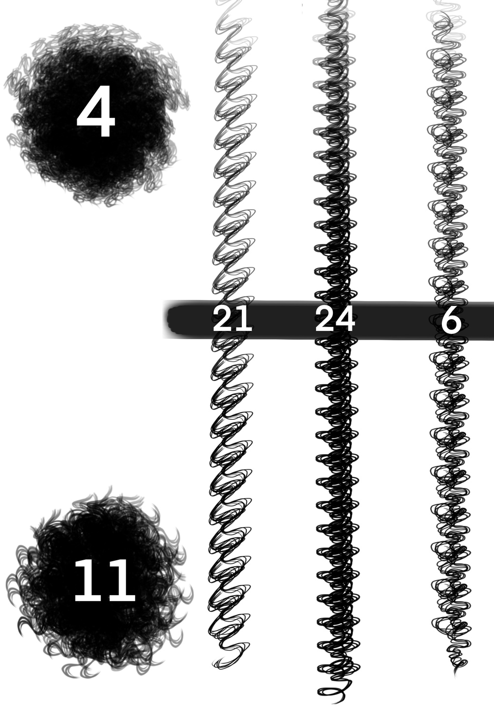 The 5 brushes included - Curl 4 Afro, Curl 11 Afro, Curl 21, Curl 24, & Curl 6 ପ(๑•ᴗ•๑)ଓ ♡